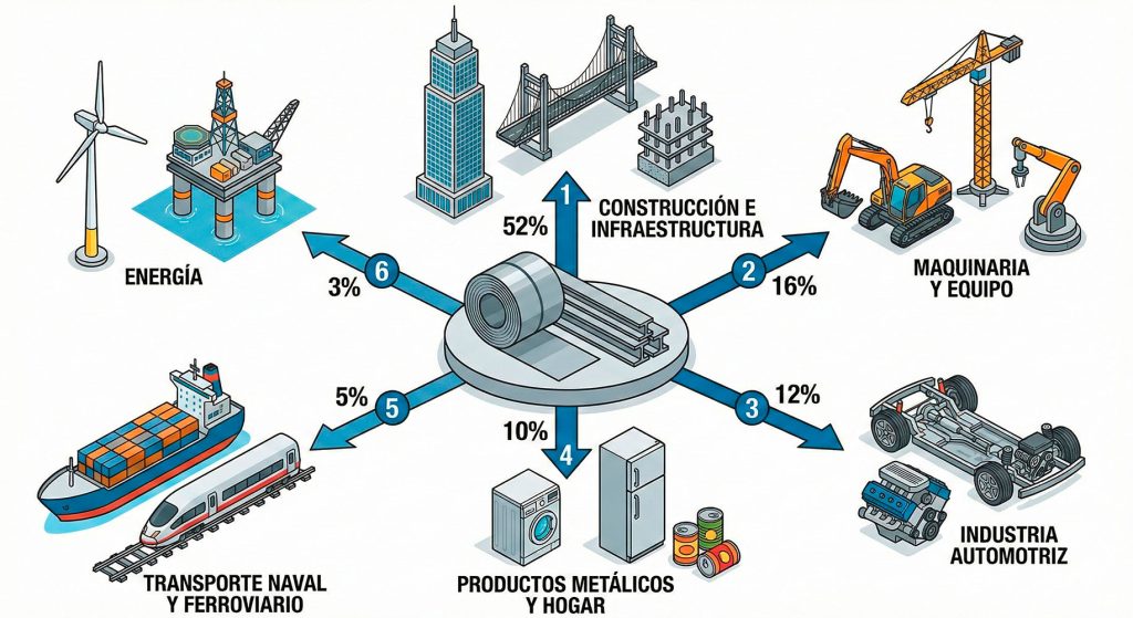 Según la World Steel Association, el consumo se divide aproximadamente así: